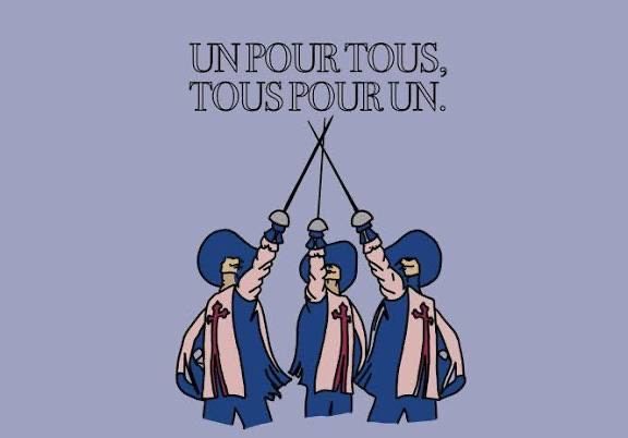 ofwel ‘tous pour un, un pour tous’.