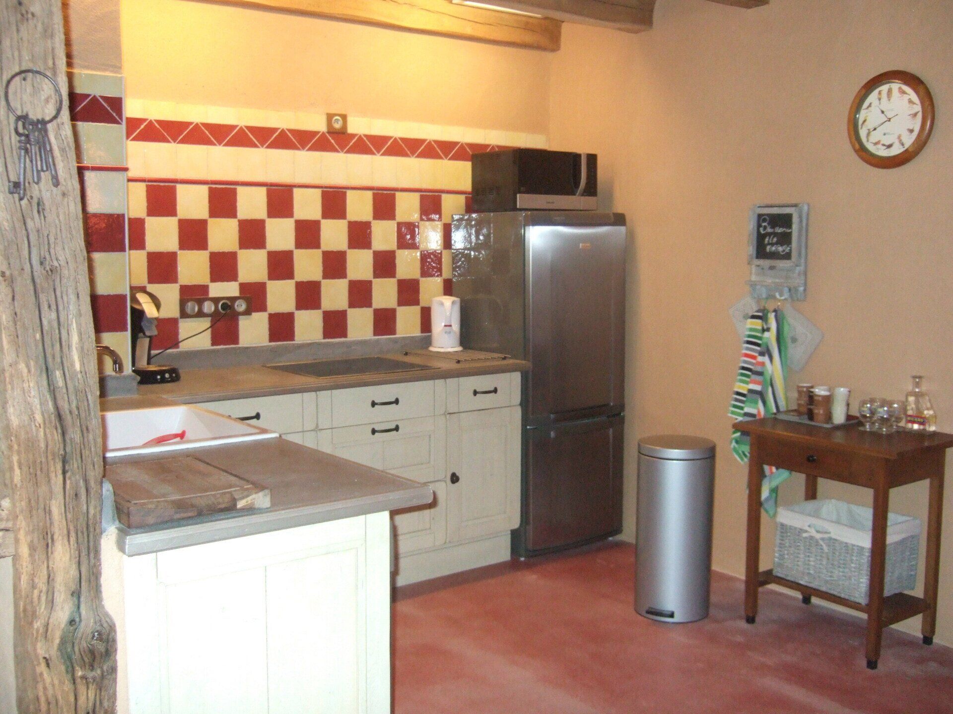 De gîte (80m2), is van alle gemakken voorzien: er is een compleet ingerichte keuken met vaatwasser en een grote koelkast met vriezer. Je kookt op inductie en je favoriete koffie maak je met een Senseo of een Nespresso machine. Laat het ons weten, dan zorgen wij ervoor dat 'ie klaar staat. Potten, pannen, bestek en servies is aanwezig, net als hand- en theedoeken, donzen dekbedden en katoenen overtrekken.